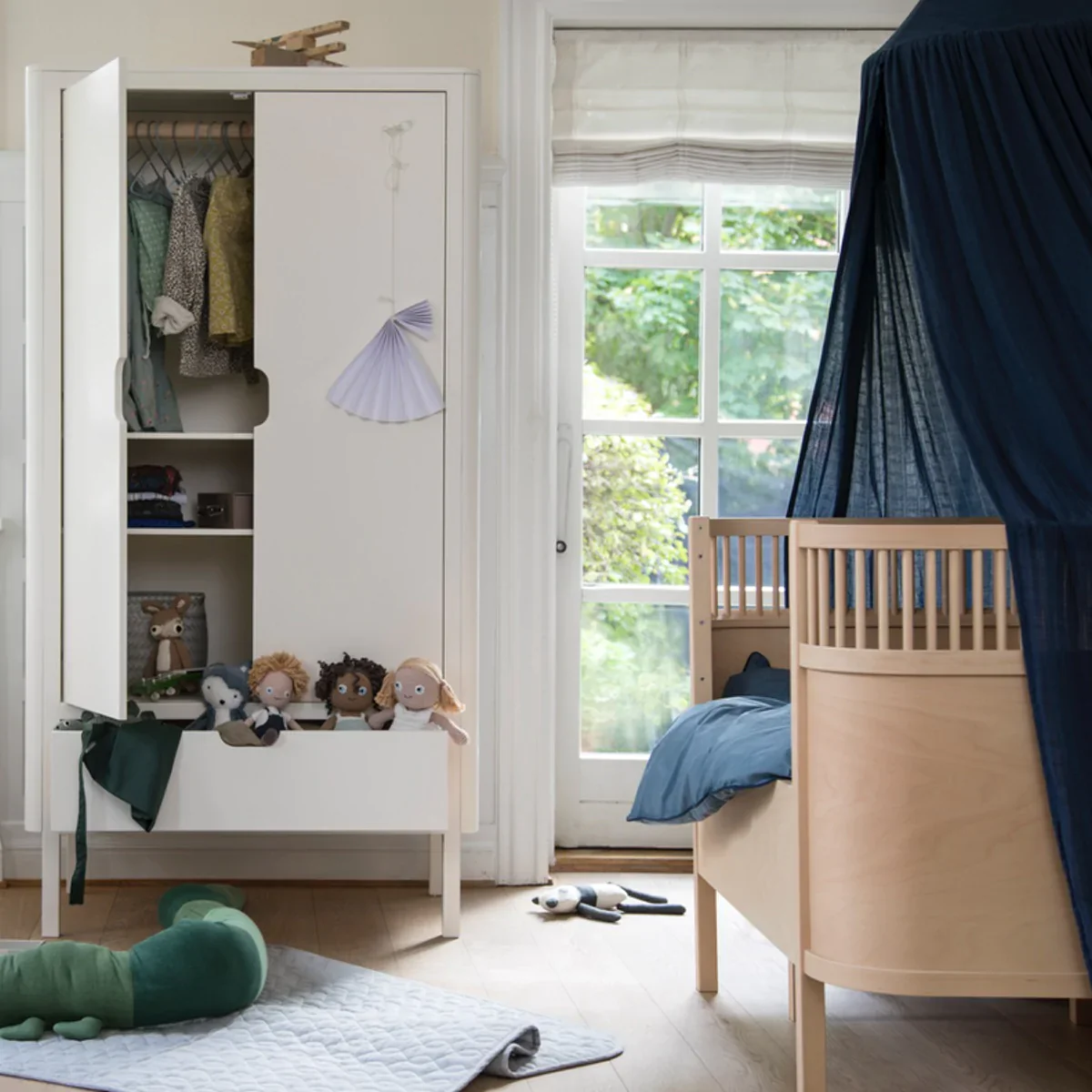 L’élégant design scandinave de Sebra est désormais complété par une armoire à deux portes. Le placard spacieux offre de nombreux rangements et s’harmonise parfaitement avec les autres meubles de la marque.