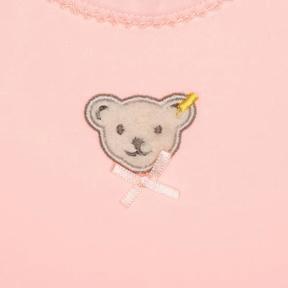 Ce t-shirt cosy aux manches volantées inspire les plus petits explorateurs. Le jersey doux offre un confort de port merveilleux et dorlote la peau délicate. Les boutons-pression sur l’épaule permettent un enfilage facile. La coupe ample offre aux filles actives une grande liberté de mouvement. Un ton rosé doux est stylisé comme une touche de couleur dans les looks festifs ainsi que dans les tenues de tous les jours. Dans tous les cas, votre tout-petit sera accompagné d’un motif d’ours en peluche Steiff moelleux sur toutes les activités agréables. Chic décontracté !