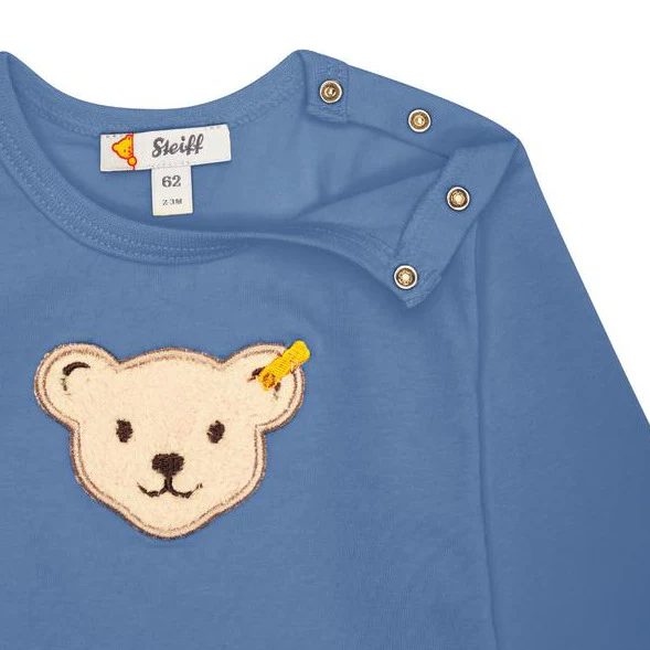 Cette chemise à manches longues en bleu inspire les petits et grands fans de Steiff avec un grand ours en peluche Steiff. Le maillot magnifique est flexible pour un ajustement confortable.La coupe décontractée donne aux bébés actifs beaucoup d’espace pour jouer et se défouler. Un grand motif d’ours en peluche Steiff orne le centre de la poitrine. Bonne humeur pour y aller !