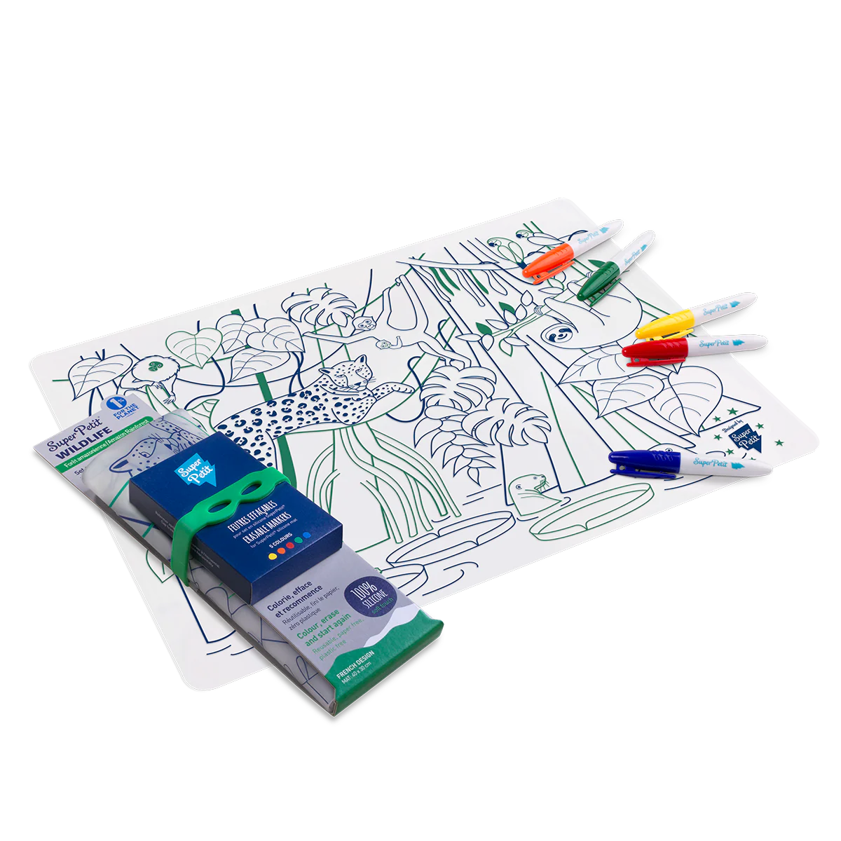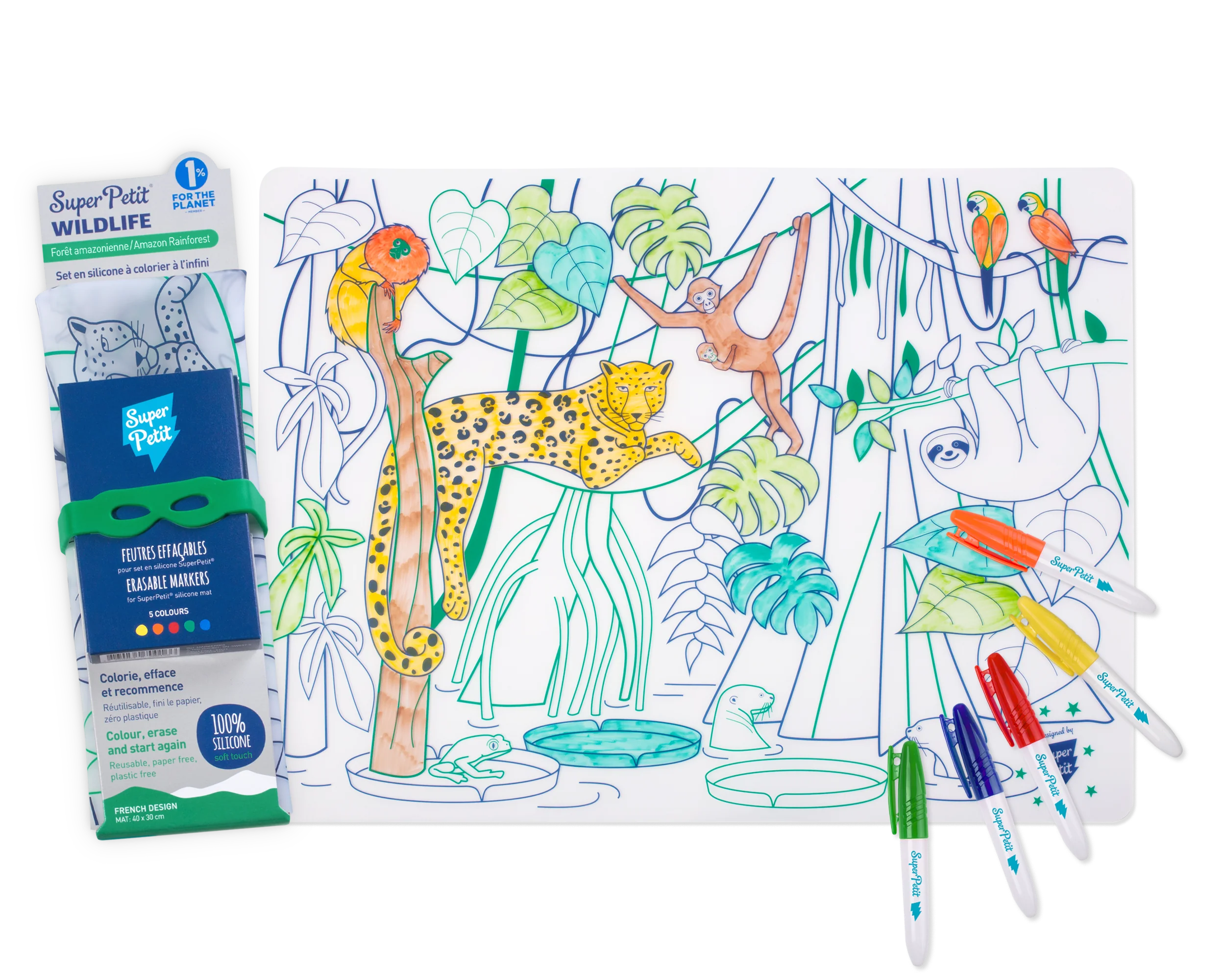 SuperPetit – Coloriage éducatif-Set en silicone AMAZONIA 5 feutres inclus