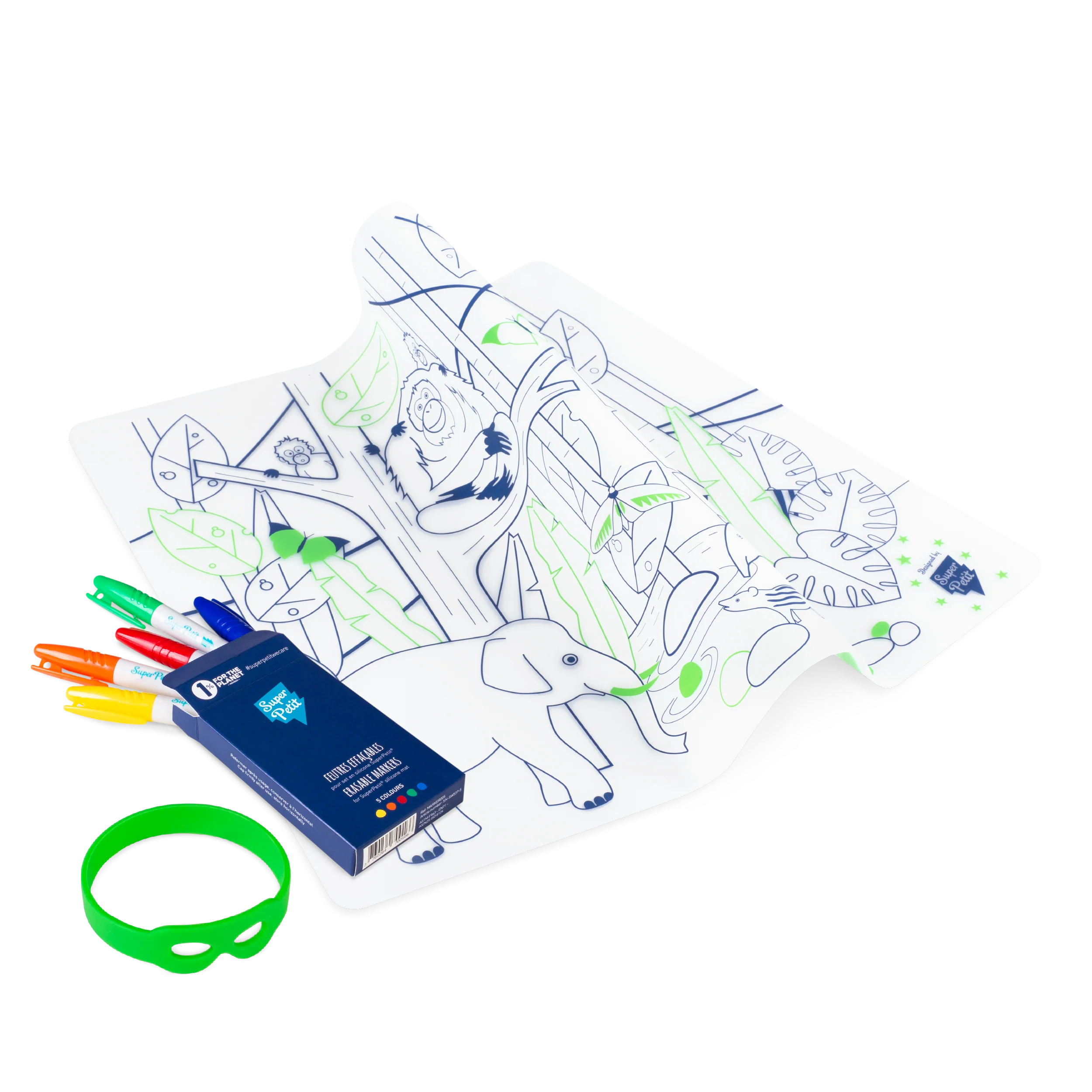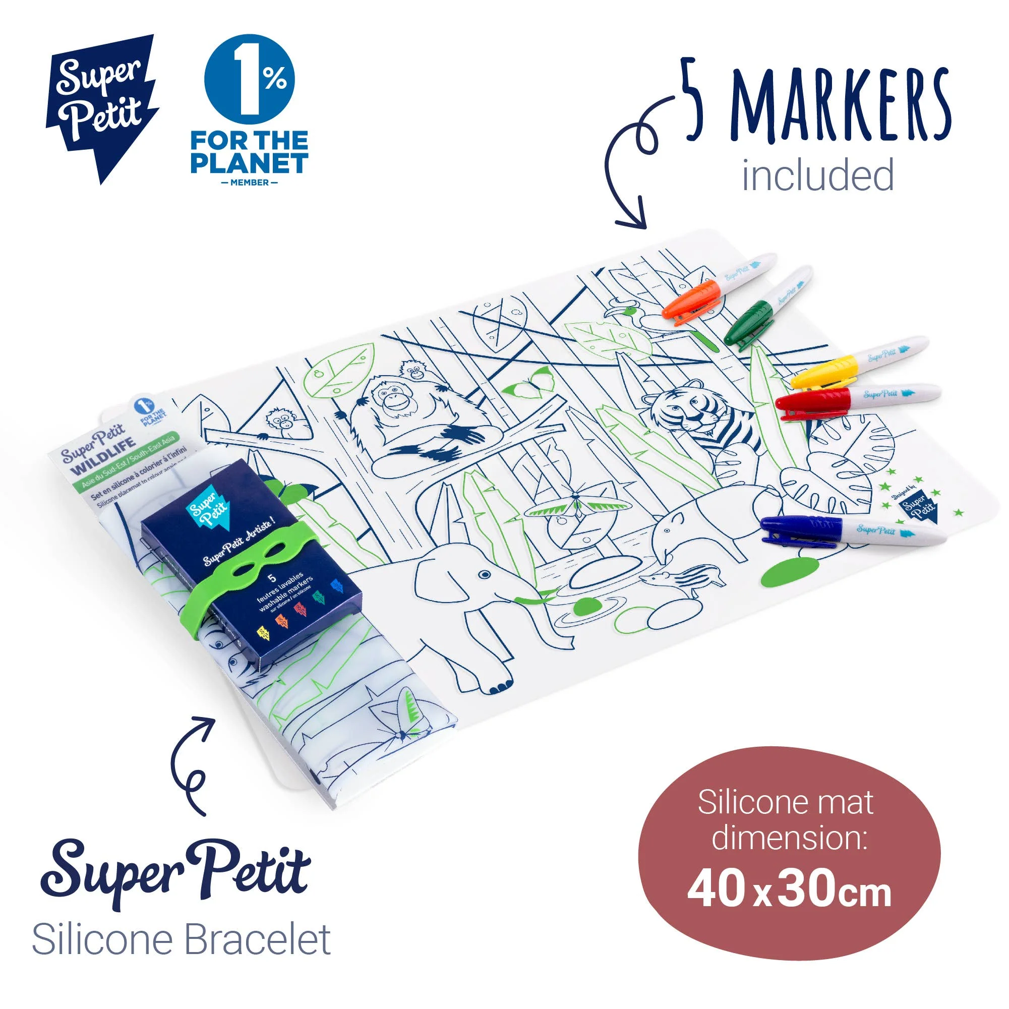 SuperPetit – Coloriage éducatif-Set en silicone JUNGLE 5 feutres inclus