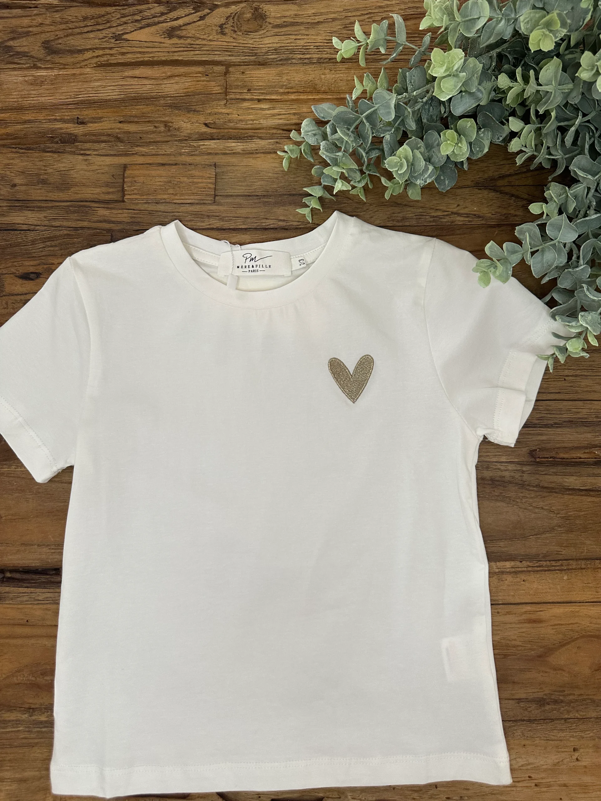 T-shirt blanc coeur or