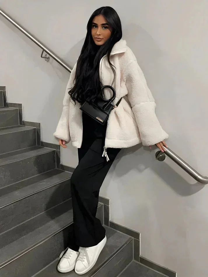 Retrouvez la chaleur et le style avec cette veste teddie. Parfaite pour vous envelopper de douceur lors des journées fraîches. Appréciez chaque instant passé à l’extérieur avec ce vêtement polyvalent et tendance.